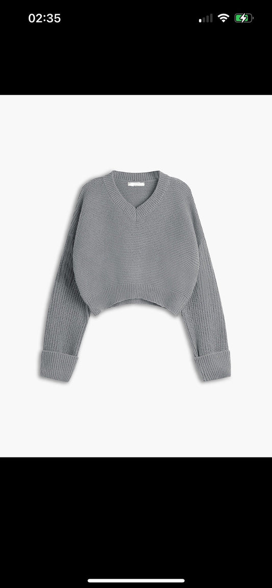 Sweter damski V-neck | truskawkowy wzór - długi rękaw - jesień/zima