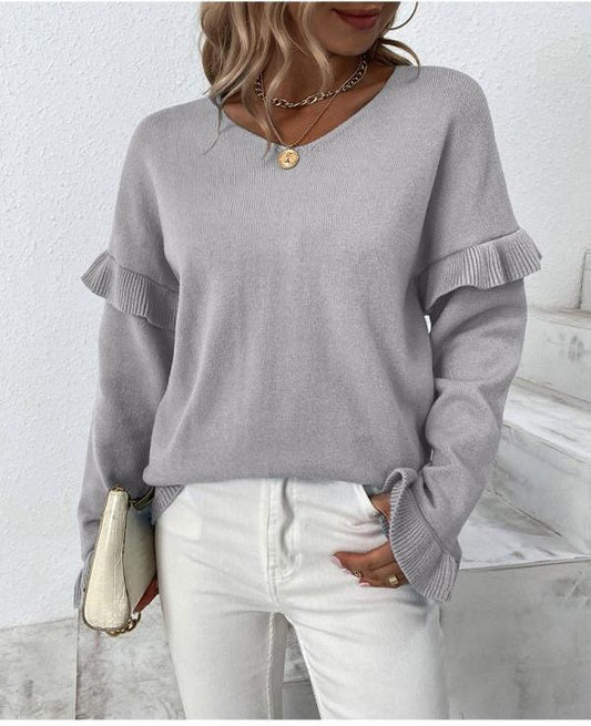 Sweter z rękawami w kształcie płatków i dekoltem w szpic - Jednolite kolory