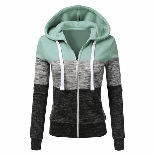 Trudy - Damska zielona kurtka w kratkę z kapturem