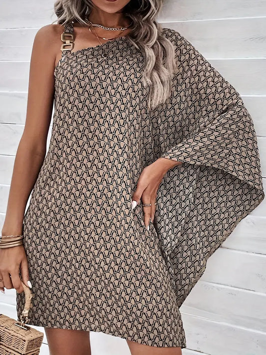 Emily - Asymetryczna sukienka z nadrukiem na całej powierzchni