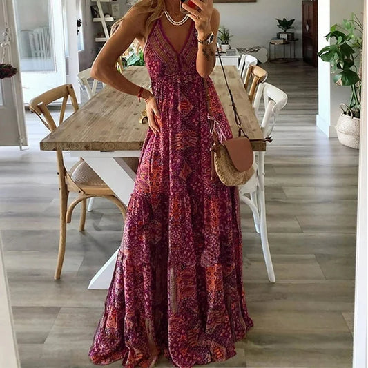Georgia - Długa sukienka maxi z dekoltem w szpic