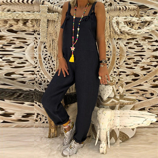 Margot - Casualowy kombinezon z gładkimi spodniami bez rękawów z dekoltem w szpic