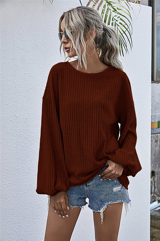 Nieformalny damski top z dzianiny z okrągłym dekoltem