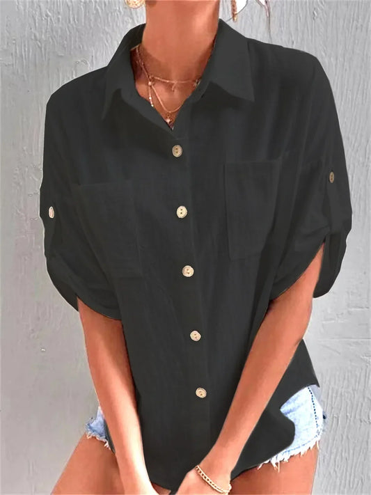 Czarny dzianinowy top damski z ukośnym zapięciem na guziki
