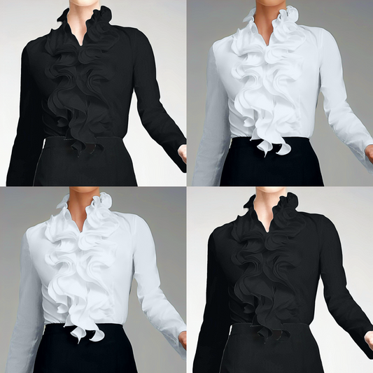 MiaMilana - Lniana bluzka z golfem przy szyi