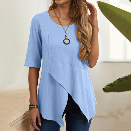 MiaMilana - Bluzka damska z dekoltem o-neck