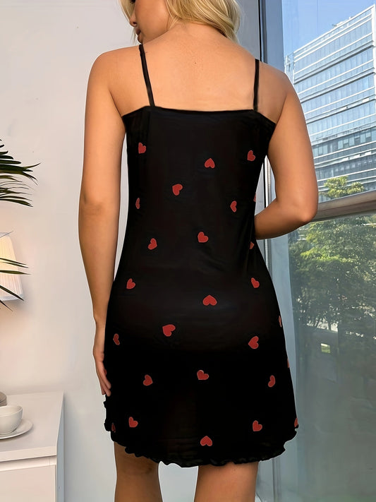 Koszula nocna z wzorem w kształcie serca i romantycznymi falbanami