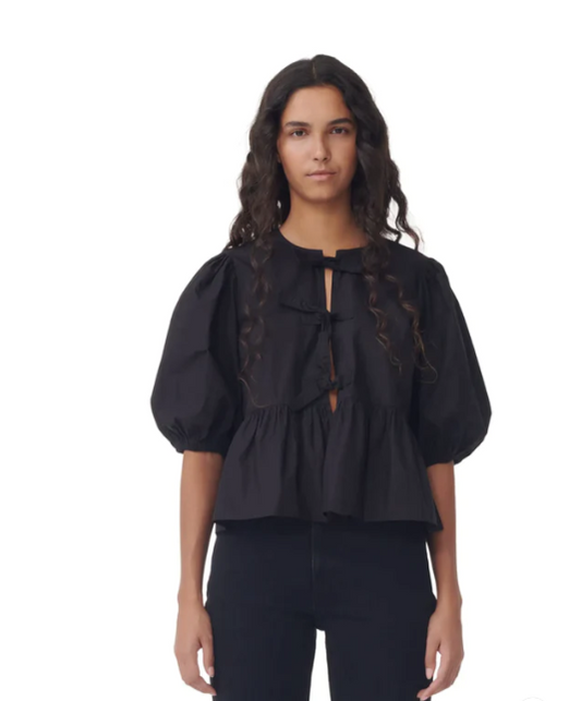 Daniela - Czarny plisowany top z rozciętymi rękawami