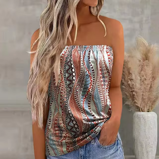 Odette - Letni etniczny top bez ramiączek z nadrukiem