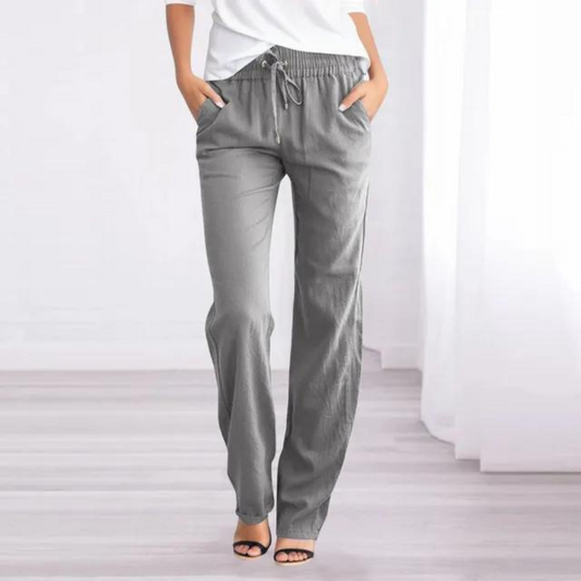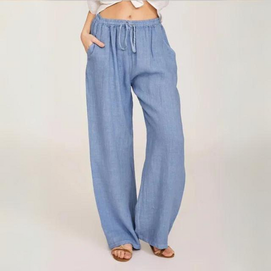 Octavia - Damskie spodnie z lnu i bawełny z elastycznym paskiem w talii