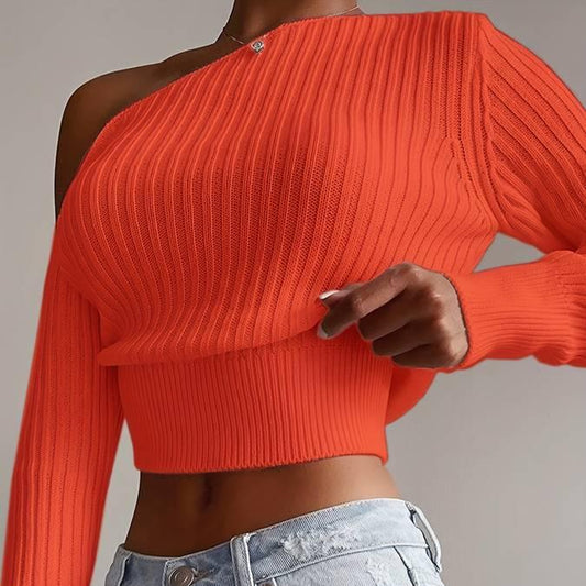 Mira - Asymetryczny krótki sweter damski z dzianiny