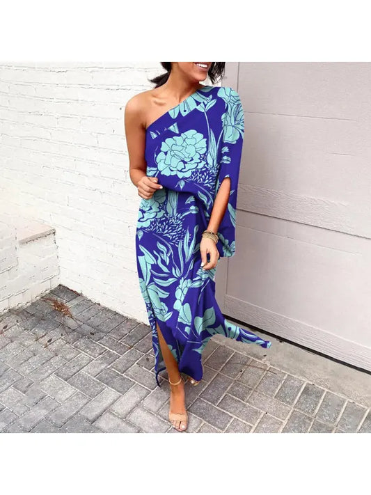 Elizeane - Elegancka sukienka maxi w stylu boho z kwiatowym nadrukiem i dekoltem w szpic