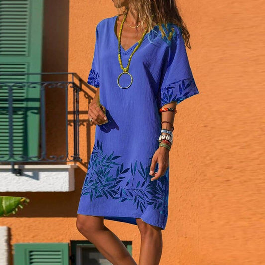 Britney - Zwiewna, luźna letnia sukienka z krótkim rękawem