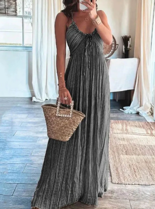 Leilani - Sukienka maxi z szelkami i dekoltem w serek