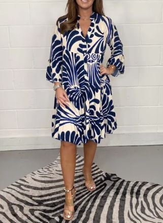 Susanna - Półdługa sukienka z nadrukiem i rozkloszowanymi rękawami