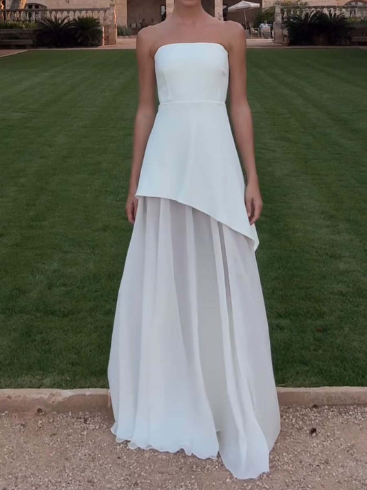 Długa sukienka bez ramiączek w letnim stylu z romantycznymi detalami