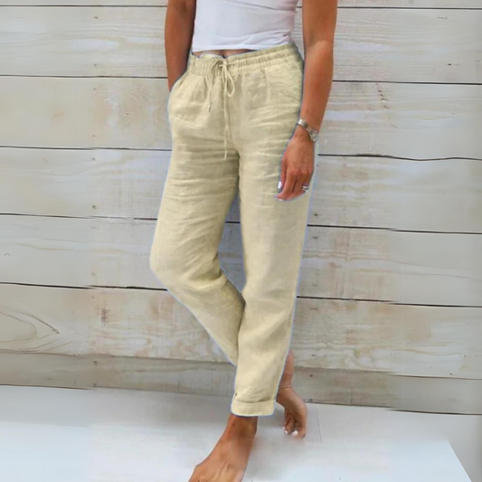 Kayla - Bawełniane lniane spodnie damskie z gumką w pasie
