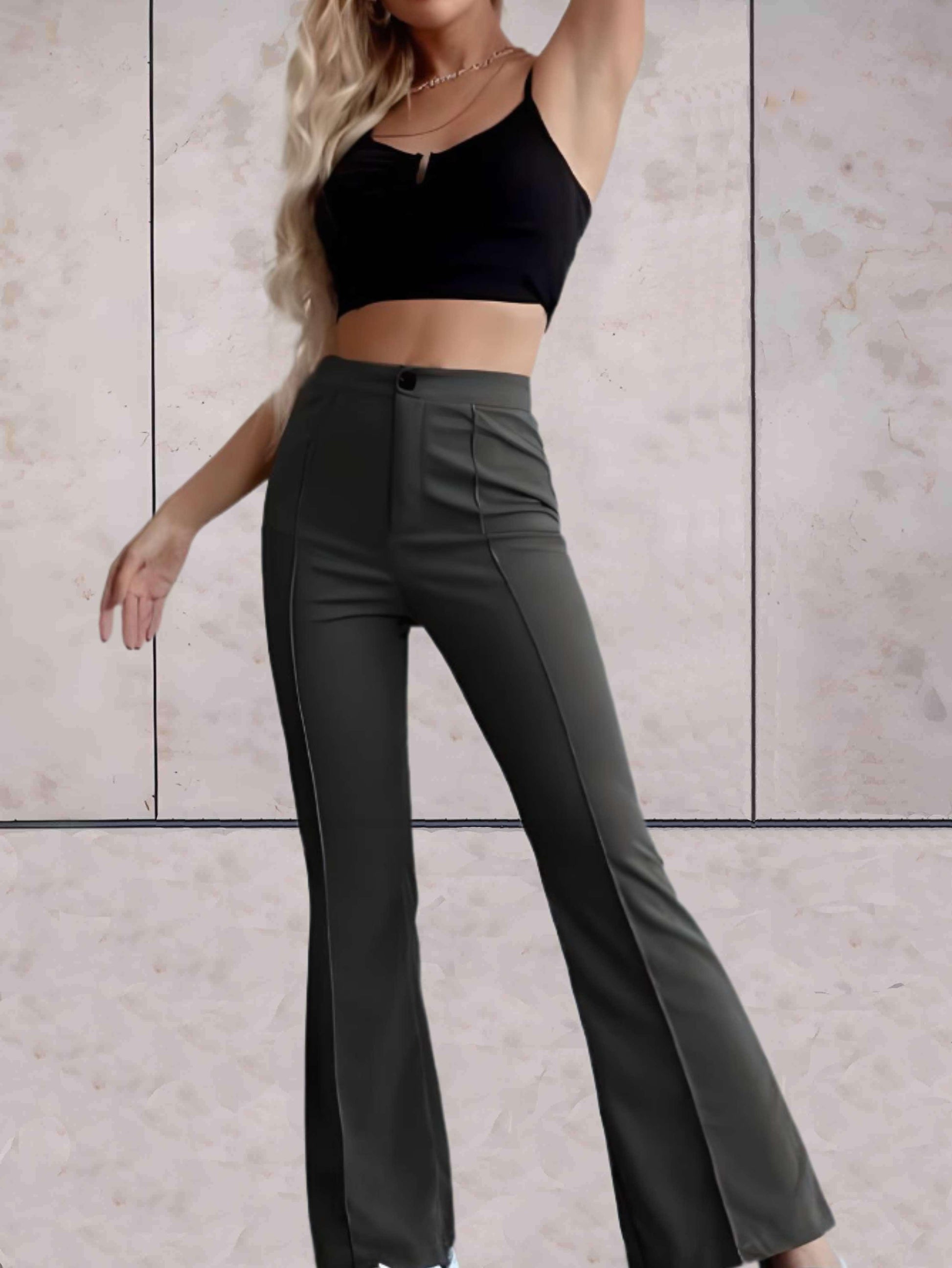 Amélie - Pięknie dopasowane spodnie z wysoką talią, pionowymi zakładkami i szerokimi nogawkami