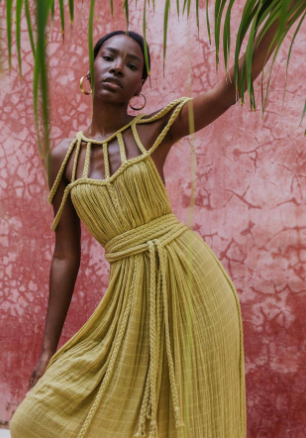 Avery - Wyrafinowana, nowoczesna lniana sukienka maxi z drapowanymi warkoczami