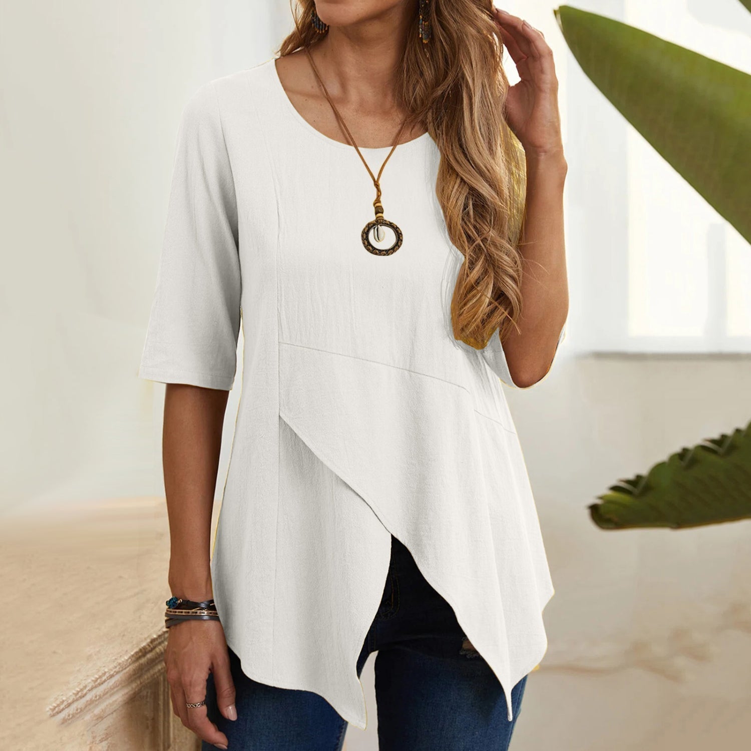 MiaMilana - Bluzka damska z dekoltem o-neck