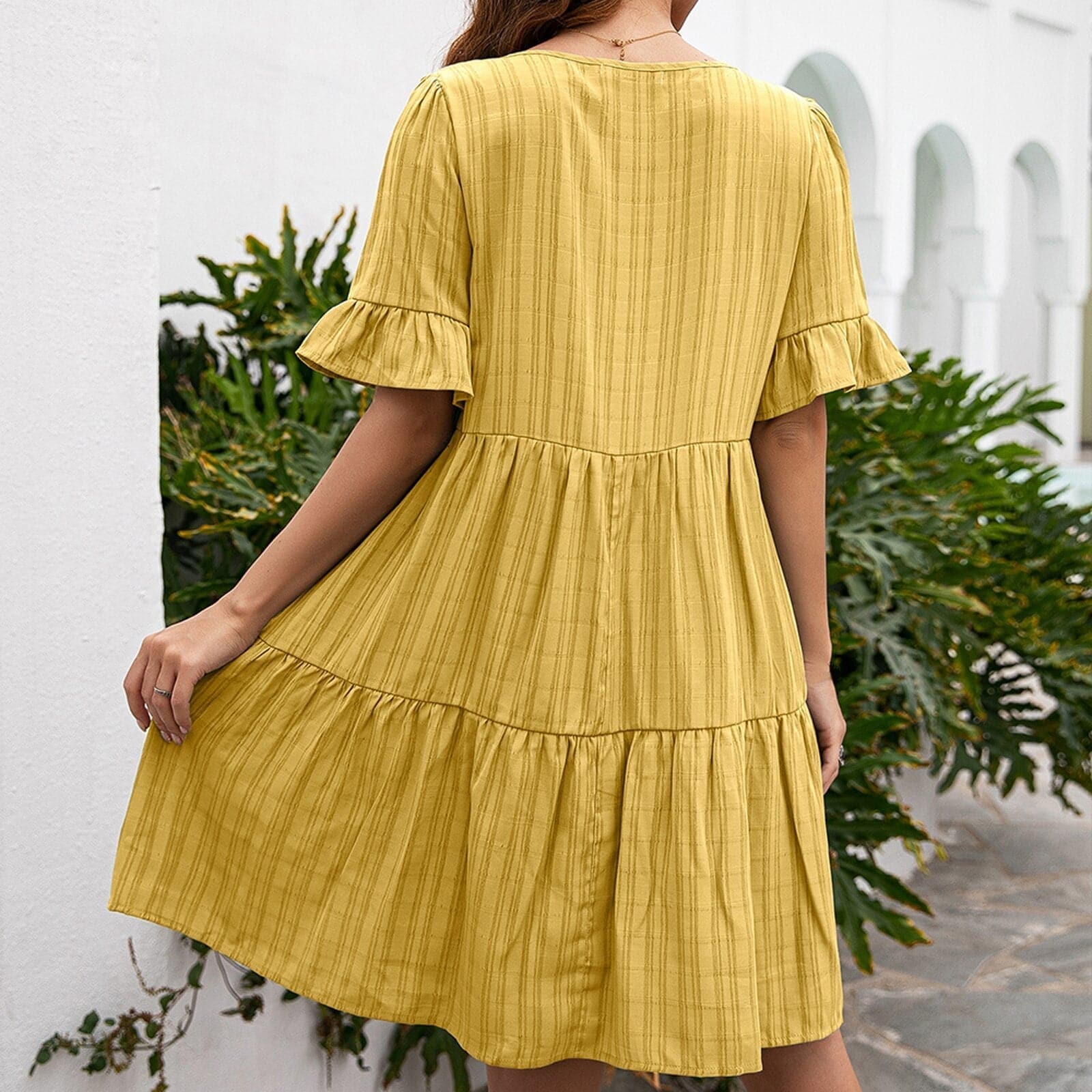 Britney - Zwiewna, luźna letnia sukienka z krótkim rękawem