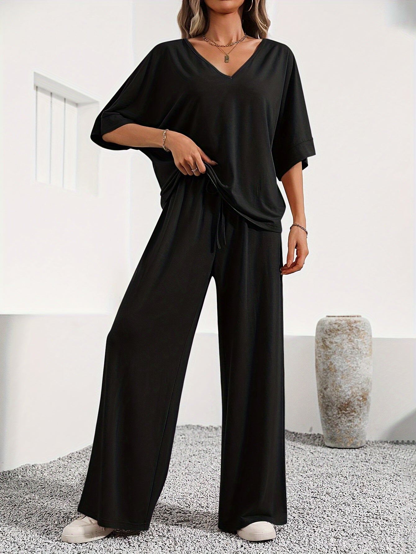 Elise - Gładki damski strój kąpielowy z dekoltem V i szerokimi legginsami