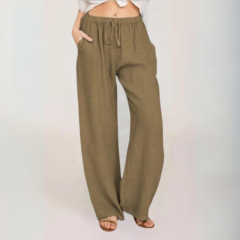 Marion - Bawełniane spodnie damskie z elastyczną talią