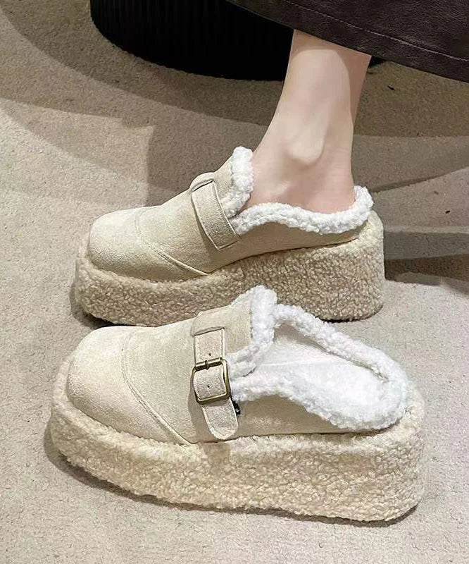 Miękkie beżowe kapcie z podszewką i klinowym obcasem