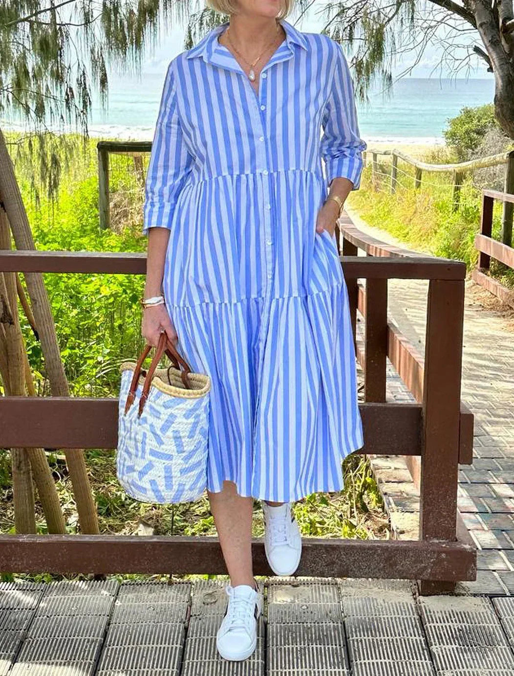 Remina - Luźna koszulowa sukienka do kolan w paski