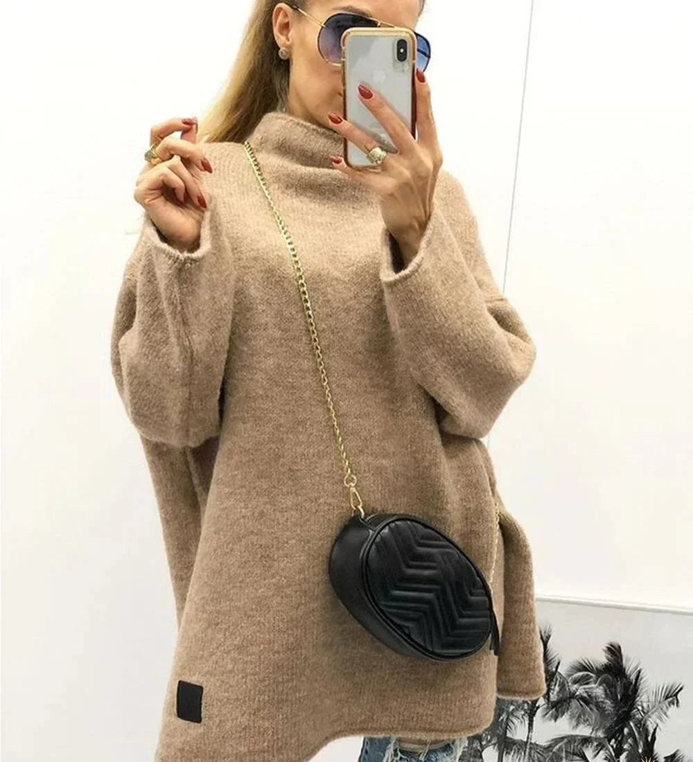Sweter z opuszczonymi ramionami, długimi rękawami i okrągłym dekoltem