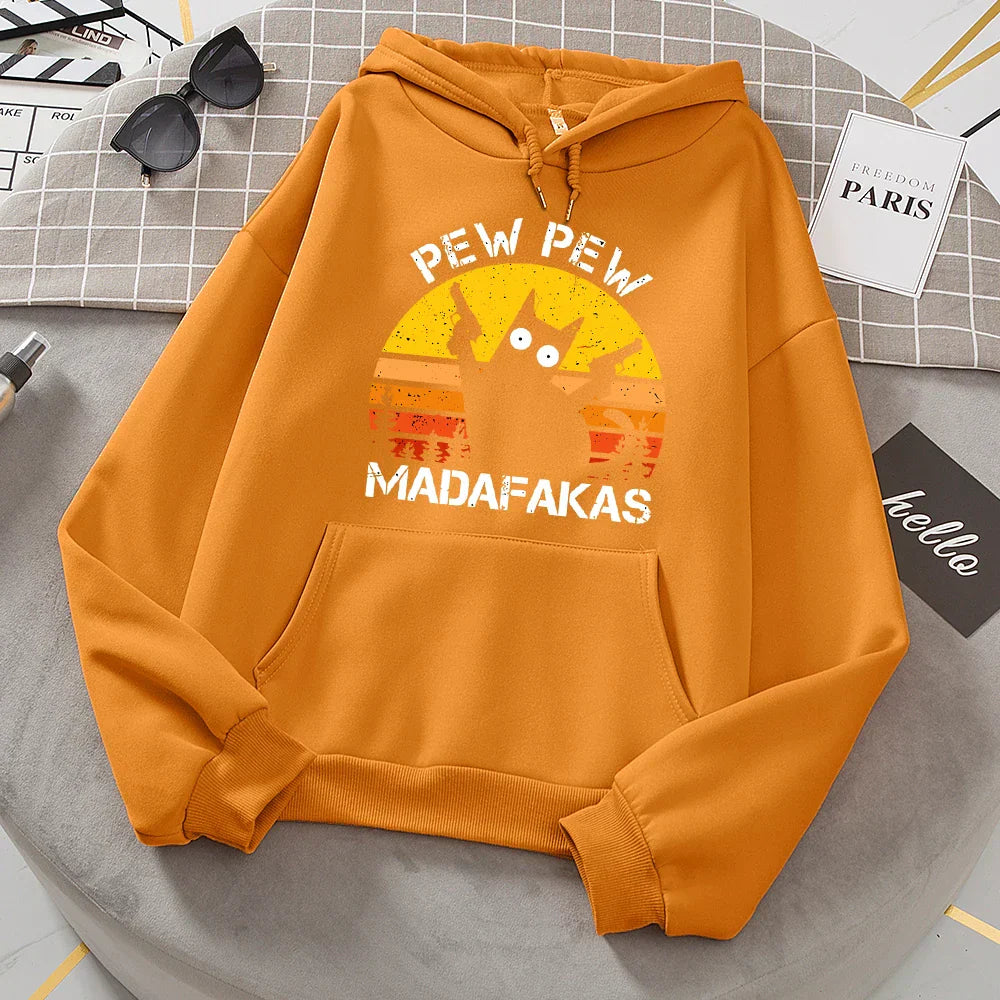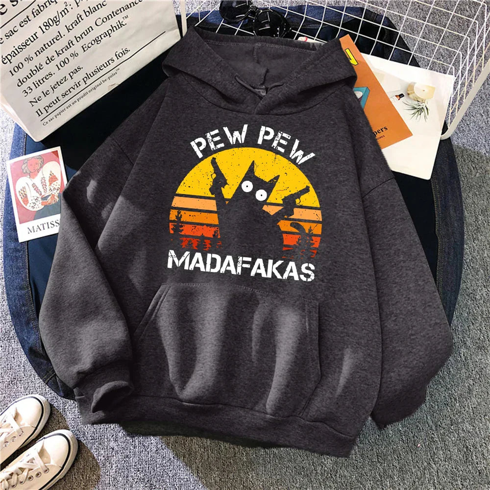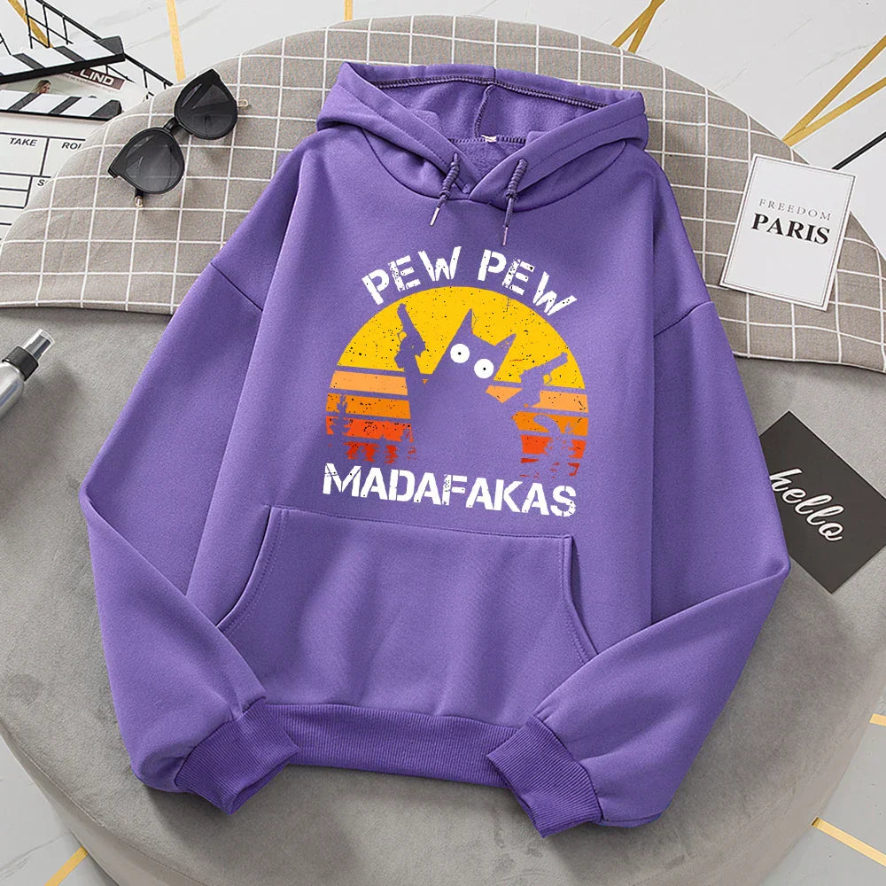 Szkarłatna bluza z kapturem dla kobiet z nadrukiem kota