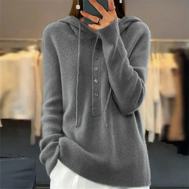 Tyra - Pulower z luźnym kapturem i dzianinowym ściągaczem z zapięciem na sznurek