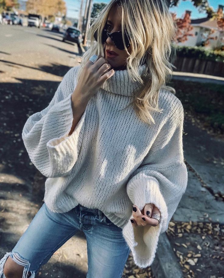 Wygodny, swobodny sweter z wysokim dekoltem z miękkiej przędzy