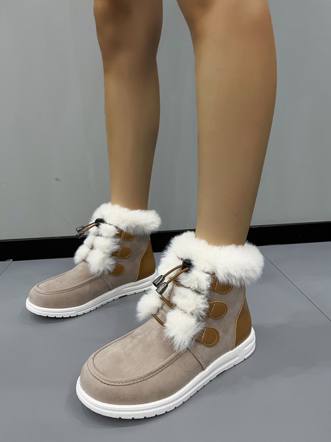 Zamszowe buty z okrągłym noskiem i pluszowymi detalami